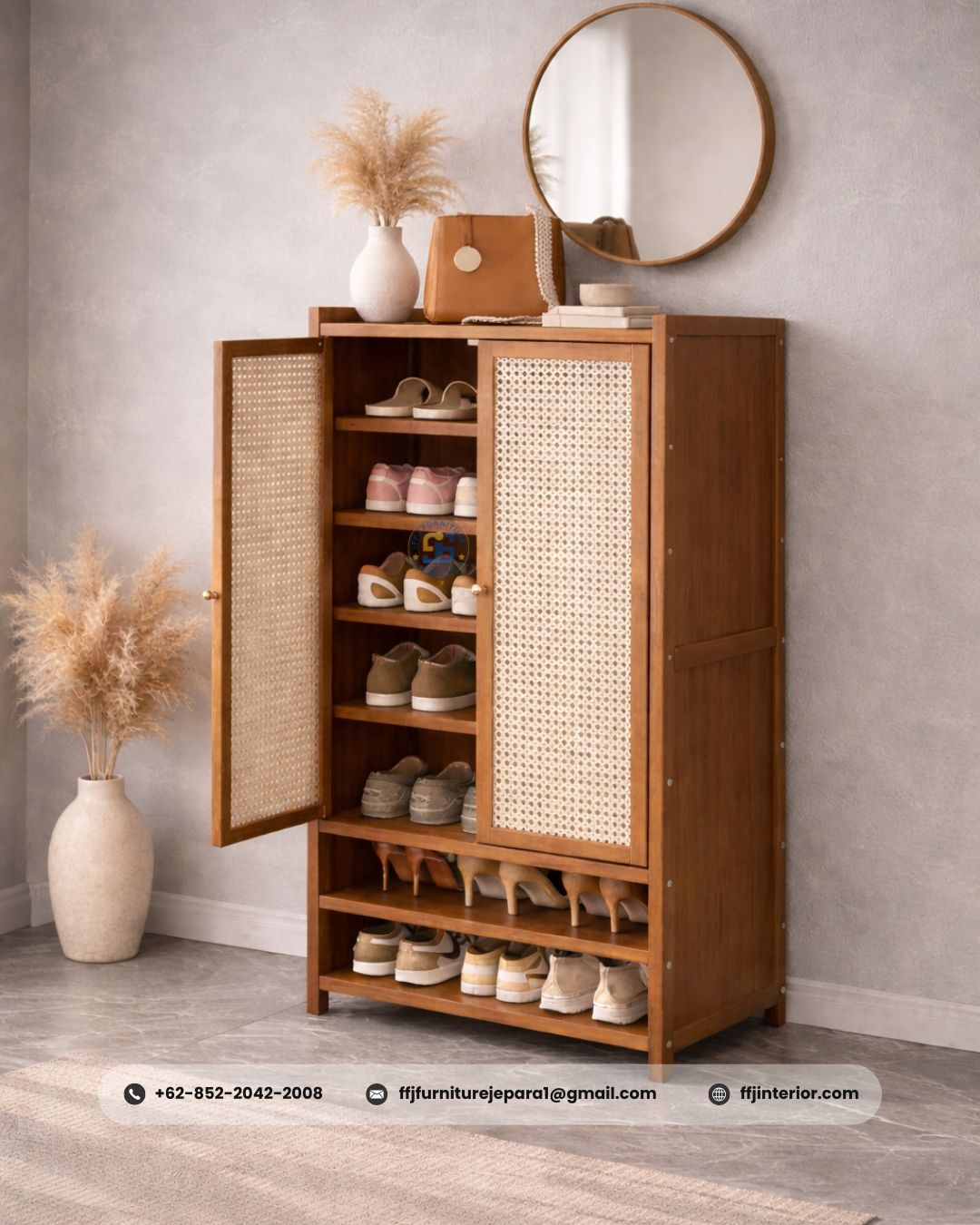 - Kapasitas: Muat ±15–20 pasang sepatu